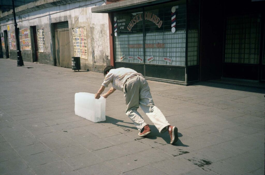 1997년, 멕시코시티의 뜨거운 거리에서 한 남자가 거대한 얼음 덩어리를 밀고 가기 시작합니다. 이 작업의 제목은 ‘실천의 헛수고(Sometimes Making Something Leads to Nothing)’입니다.